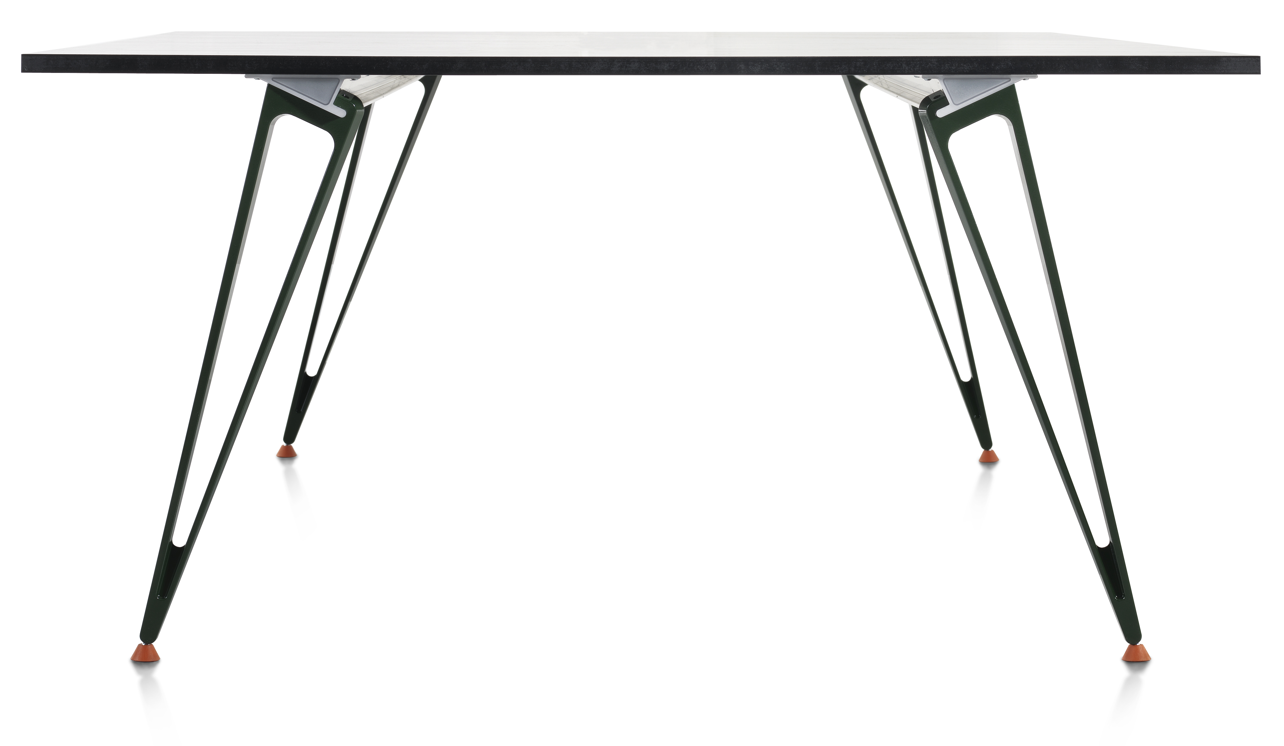 Where most strong structures in earlier table-system are to be hidden underneath the table-top, Troels Grum-Schwensen found it necessary to define and develop a brand-new aesthetic for ATTACH, not only allowing the structure to be placed visible, close to the tabletops short-side, but even to make it a graphical, aesthetic contribution to the whole furniture.